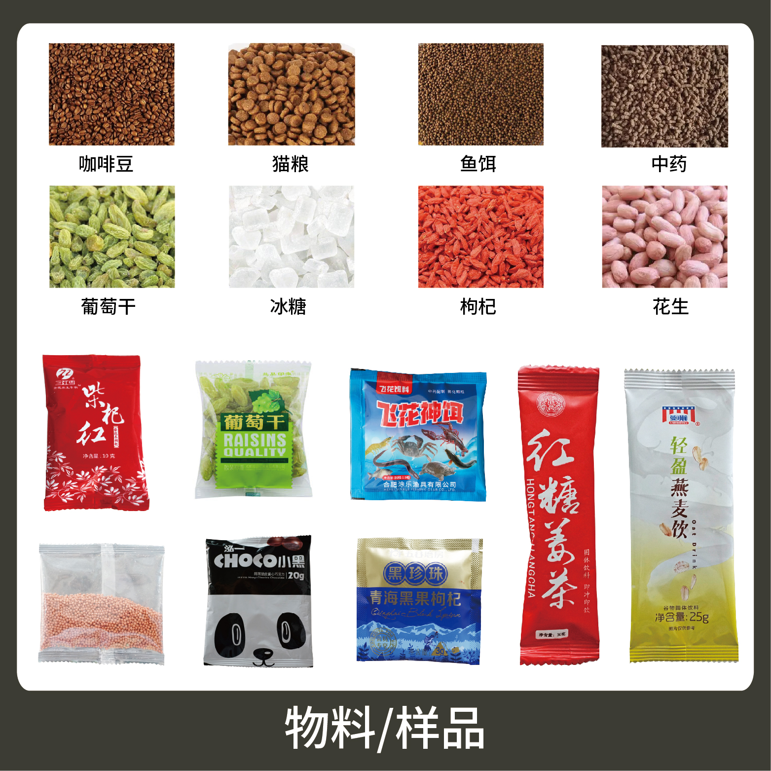1、適用于食品、醫(yī)藥、化工、化妝品行業(yè)中顆粒物品的計量包裝,如:種子、枸杞、中藥顆粒等。
