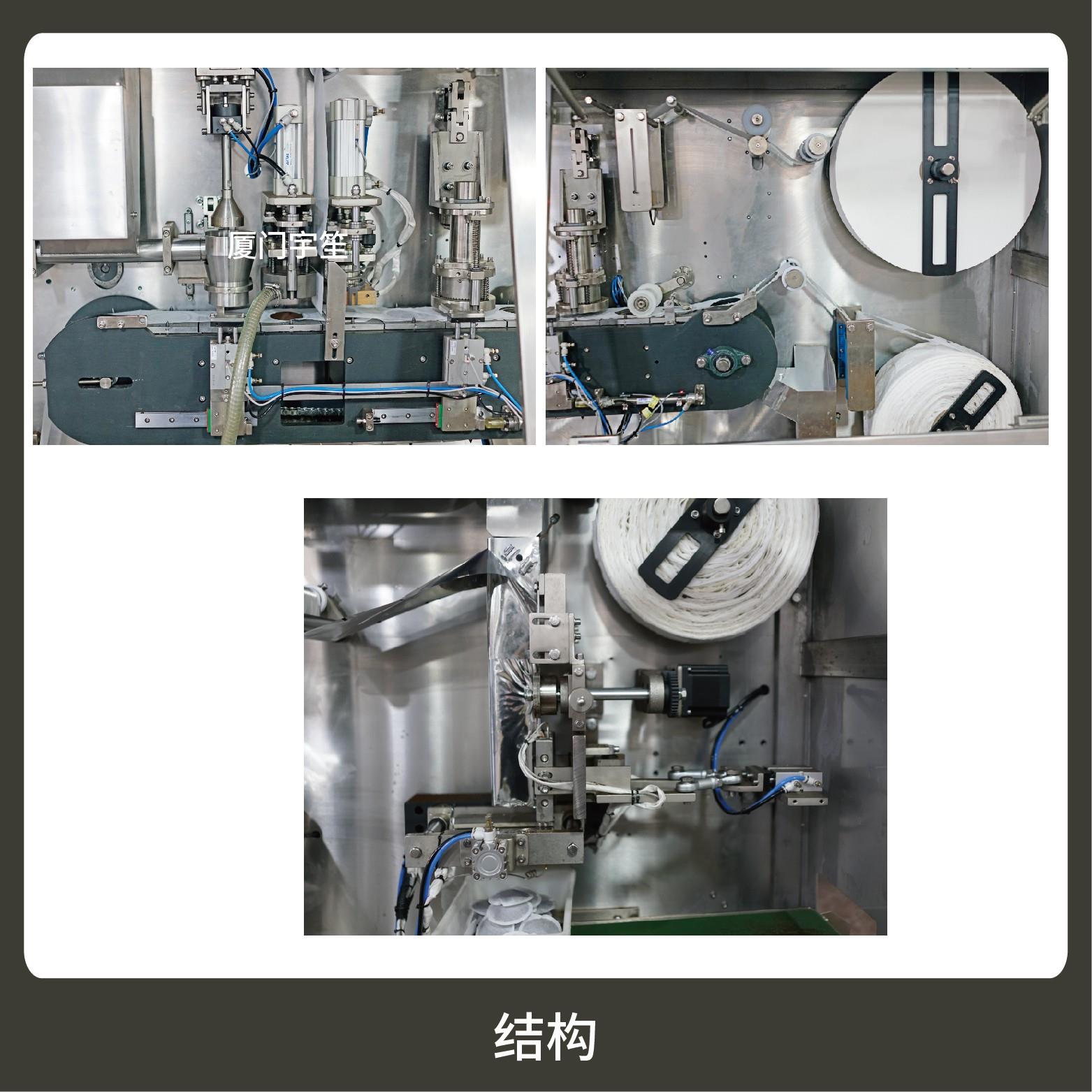 The machine is suitable for the dual bag packing of powder-like materials, such as tea powder and coffee powder.
